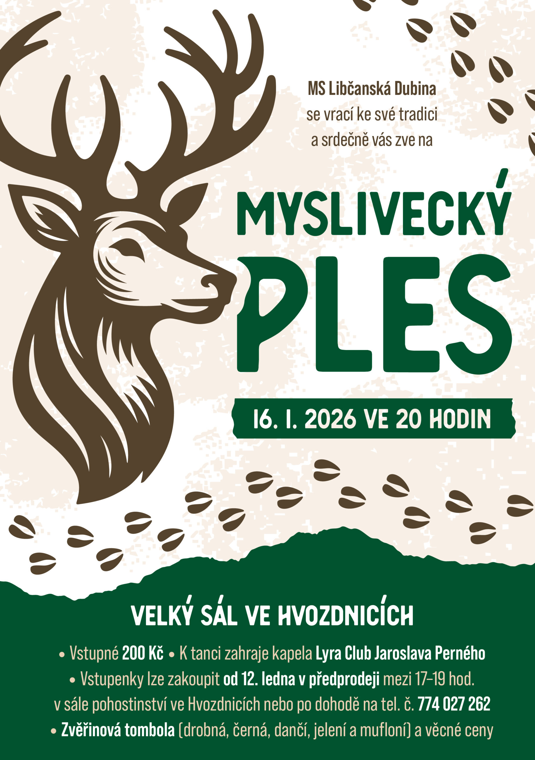 Myslivecký ples ve Hvozdnicích 30. 12. 2025 autor: Jana ŠtěpánkováMS Libčanská dubina Vás zve 16.1.2026 na ples od 20 hodin s bohatou tombolouPřílohyMyslivecky_ples_plakat (513 kB)