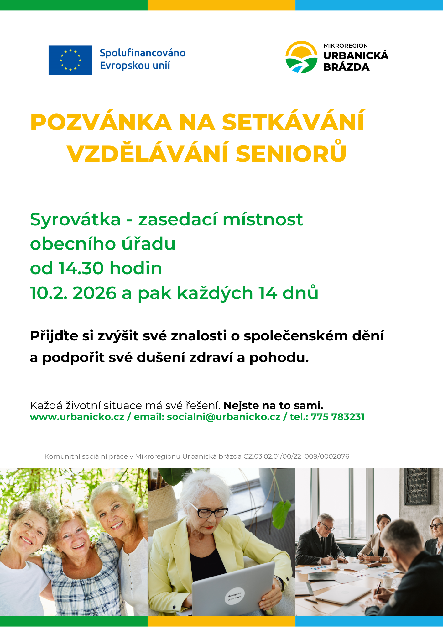 Setkávání nad sociálními tématy 10. 3. 202629. 1. 2026 autor: Jana ŠtěpánkováV Syrovátce 10.2.2026 a poté vždy jednou za 14 dní v rámci k projektu Komunitní sociální prácePřílohyPozvánka LS 2025-2026 Syrovátka (2 MB)