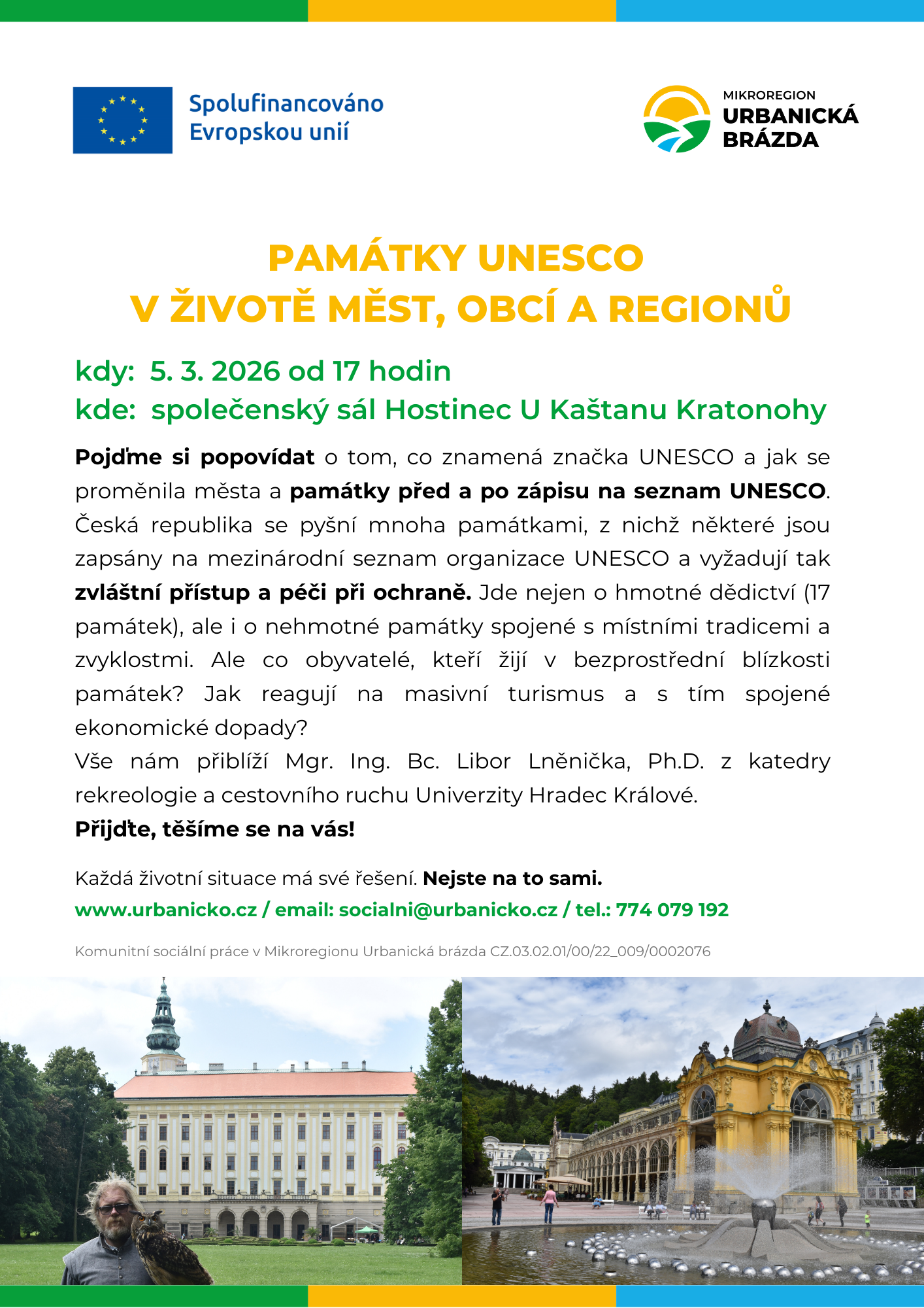 Pozvánka na přednášku O památkách UNESCO z životě měst, obcí a regionů